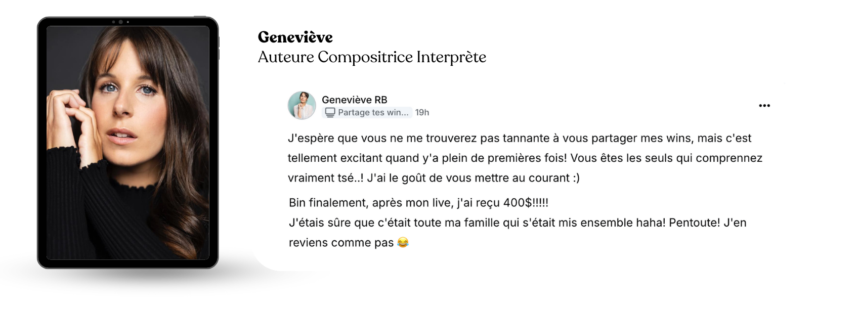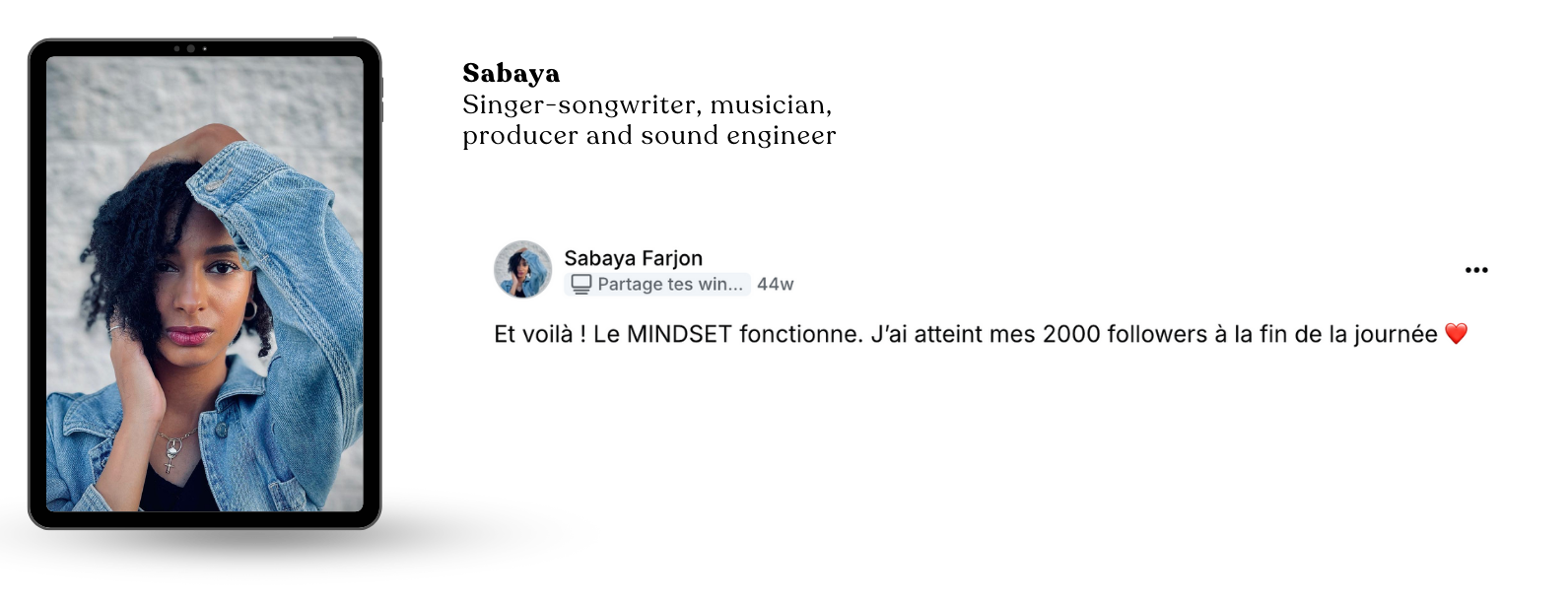 - Tu n’as plus besoin de justifier ton choix d’artiste. Tu vis pleinement ce que tu es, avec un revenu qui reflète la valeur de ton message.