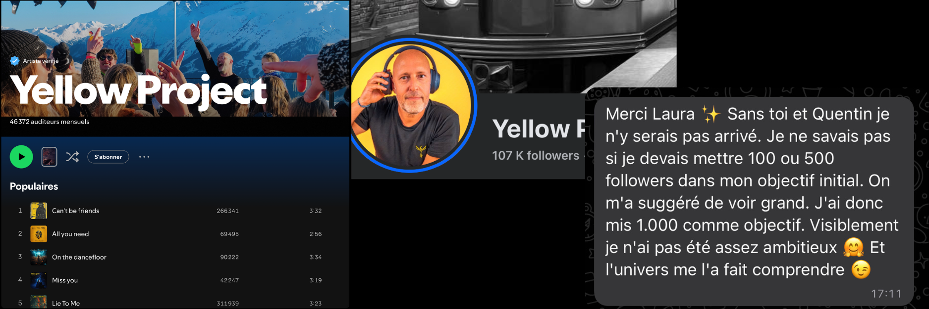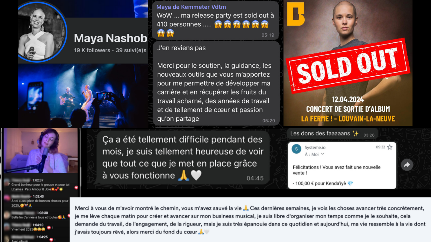 Des canaux d’entraide où tu peux exprimer tes doutes, célébrer tes victoires, partager tes musiques, tes idées d’offres… ou juste venir souffler un peu entre deux projets.