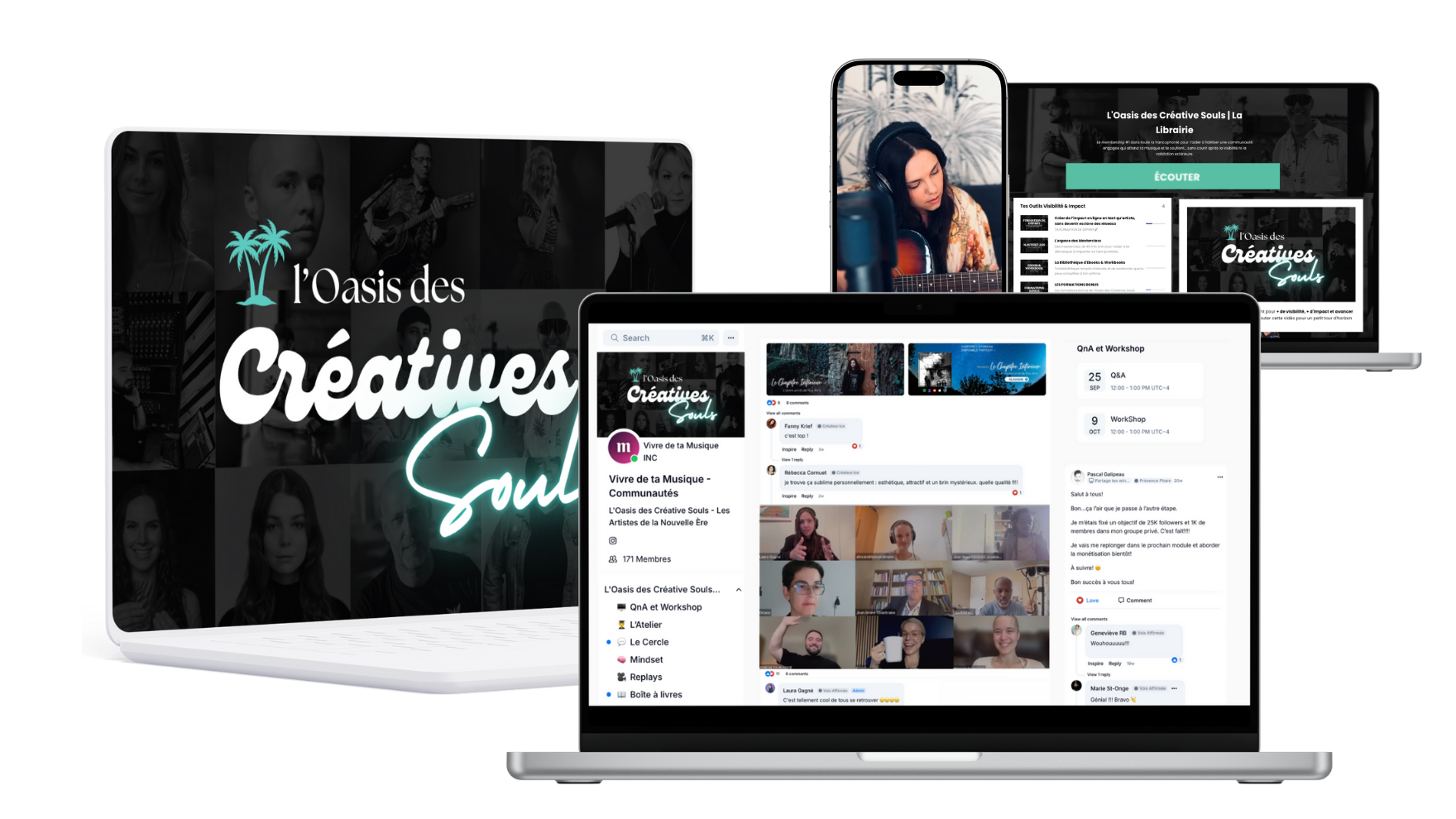 Où tu apprends à bâtir une communauté engagée qui attend ta musique et qui te soutient tout en développant le mindset et la confiance d’une véritable âme artiste-entrepreneure.