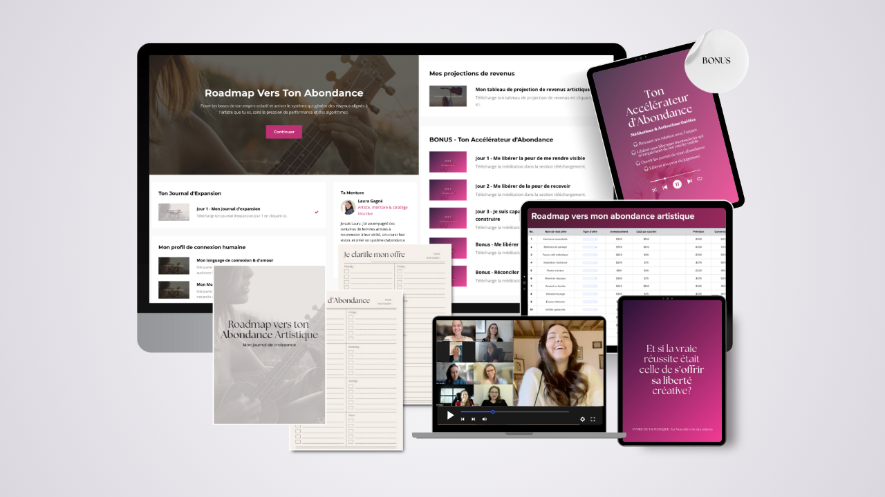 Des outils guidés pour clarifier ta vision, structurer ton offre artistique irrésistible (même si tu ne sais pas encore quoi vendre) et la rendre magnétique pour ton public idéal.